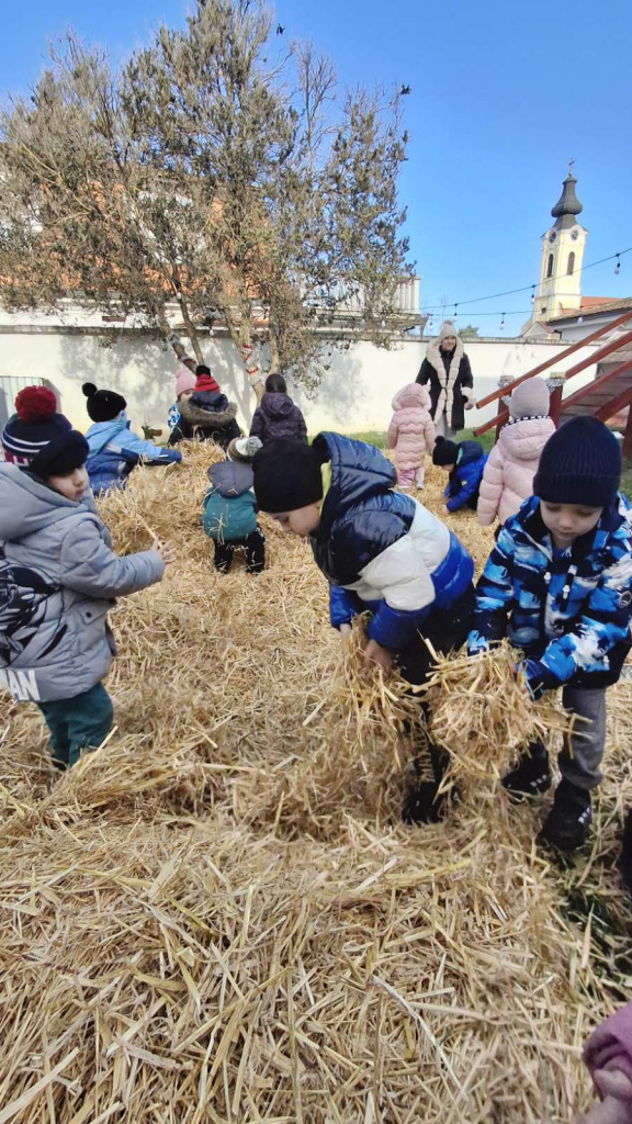 Zahvaljujući snalažljivosti i ideji vaspitača Mučalov P. Branislave i njenoj odličnoj saradnji sa roditeljima, decu je iznenadila slamom umesto snega :) Roditelji su se saglasili da vaspitač organizuje igre u slami kada nam već priroda nije omogućila igre u snegu. Zahvaljujući porodici Maljugić dobili smo lepu čistu i meku slamu uz pomoć koje smo napravili deo u dvorištu vrtića za igre u slami :) Hvala svim roditeljima što su omogućili deci predivne trenutke boravka na otvorenom u bezbrižnoj igri, razvijanju motorike, smehu i druženju.