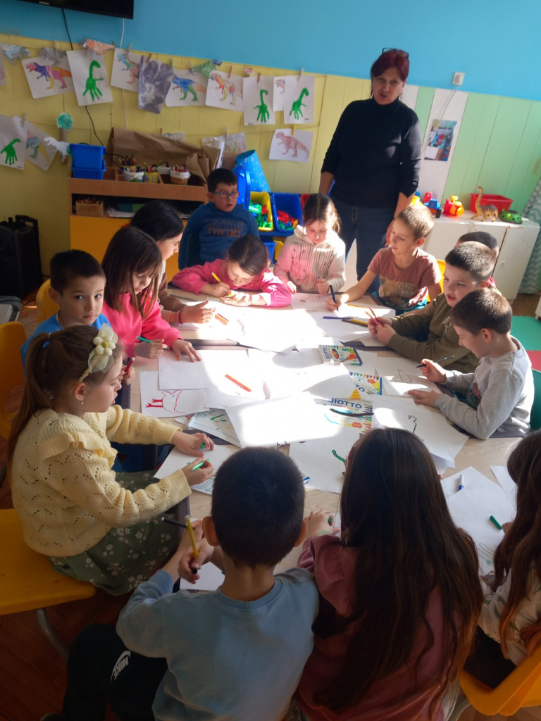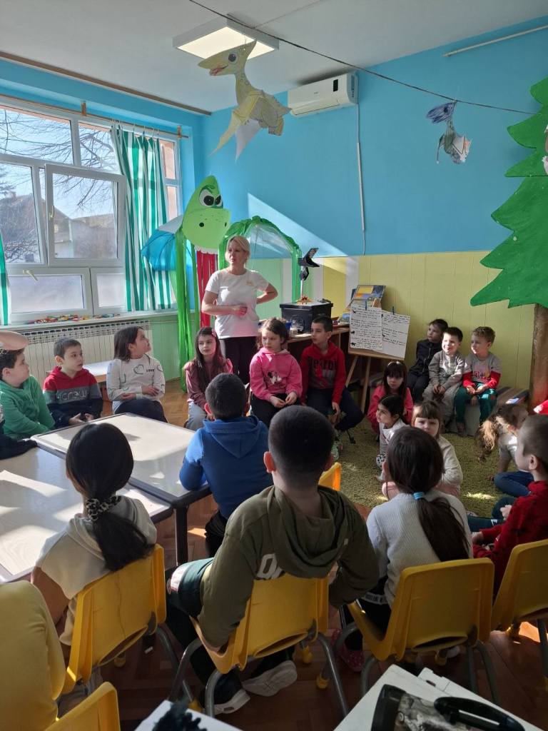 viber slika 2025 03 05 13 24 51 250Danas su učenici I-2, sa svojom učiteljicom Aleksandrom Petraškov Blažin, bili u poseti PU"Pava Sudarski" na poziv vaspitačice, Branislave Petraškov Mučalov, koja sa decom realizuje projekat na temu "Lov na dinosauruse".
